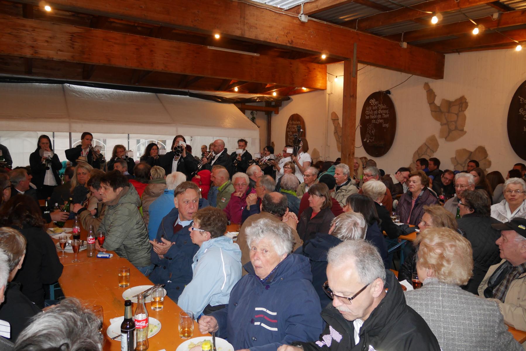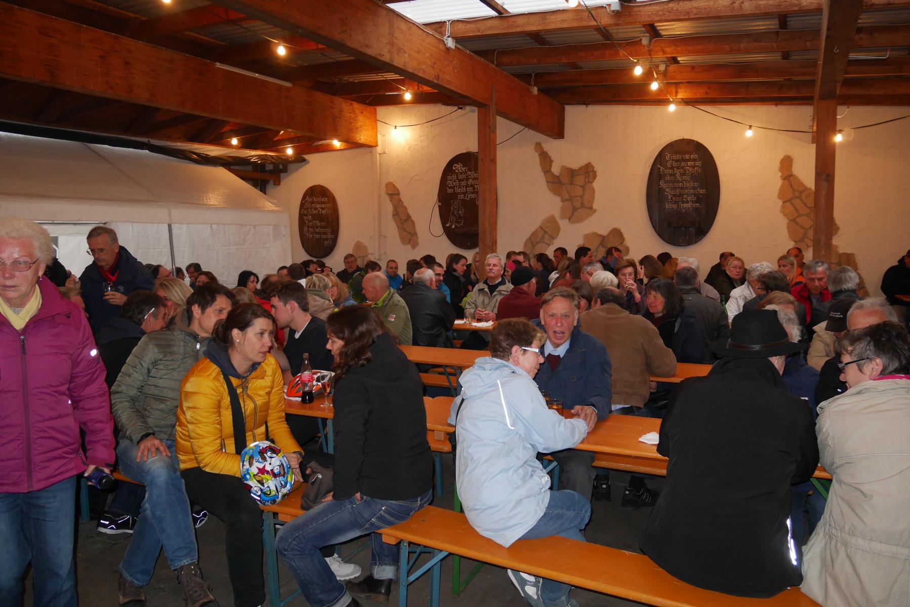 Der erste Teil der Unternehmung Maibaum war getan, es folgte der nicht minder freudvolle zweite der St. Georgener Walpurgisnacht. Familie Faber stellte dem BV auch in diesem Jahr die gemütlich überdachte Laube es Weingutes für den traditionellen Maibaumhock zur Verfügung. Man konnte zusammensitzen und bei Brezeln, Schäufele, Fleischkäs‘ mit Kartoffelsalat oder ‚nur‘ Quarckbrot den Gesprächsstoff des vergangenen Winters beim ersten Hock des Jahres nachholen. Dazu ein schönes Viertele….und alles unter dem schützenden Dach, während der Aprilregen, oder war es schon ein Mairegen?, draußen prasselte. Geplant und vorbereitet wurde der Maibaumhock von Gerhard Hesse der 2. Schatzmeister des BV. Der Organisator Hesse war den ganzen Abend über an vielen Stellen und hat dafür gesorgt, dass sich die Gäste wohlfühlten. Nicht zu vergessen sind die vielen Helferinnen und Helfer, deren freiwillige Arbeit den Maihock überhaupt möglich machen. Herzlichen Dank für ihren Einsatz! A.E.