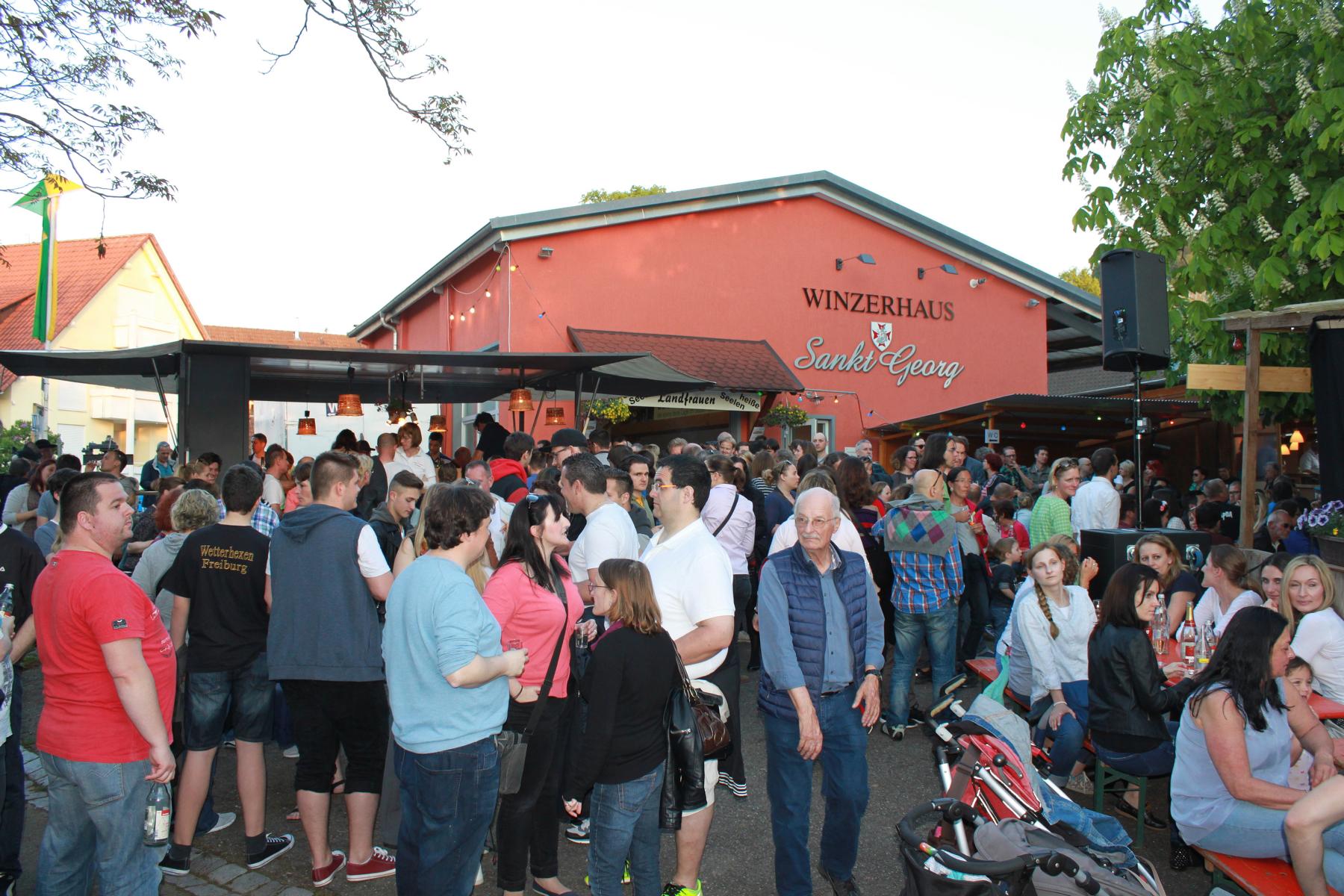 Wie schon in den vergangenen Jahren wurden die Zuhörer auf der Malteserordensstraße mit einem Eröffnungsgläschen Wein aus dem Weingut Faber versorgt. Im Publikum hörten viele Vereinsvorsitzende der St. Georgener Vereine den Reden zum Start der Weintage zu, Pfarrer Wehrle von der Seelsorgeeinheit St. Georgen Hexental konnte man sehen und auch die Gemeinderäte Frau Buchen und Herr von Kageneck waren anwesend. Die Ehrengäste wurden nach der offiziellen Eröffnung in die Laube der Feuerwehr geladen, wo sie vom Abteilungskommandanten der Abtl. 06 Achim Müller bei Hefezopf, Brezeln und Wein sehr herzlich begrüßt wurden.